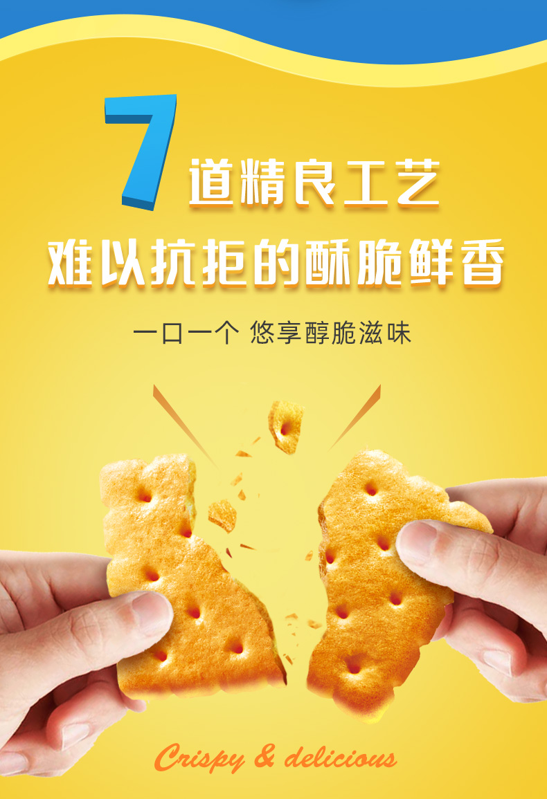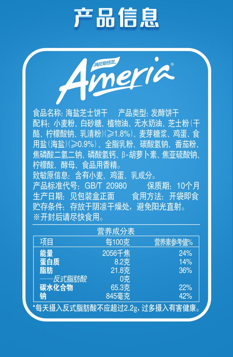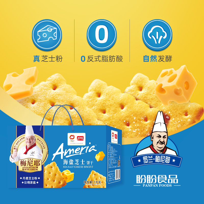 规格:200g 盼盼海盐芝士饼干200g,一口就爱!芝士粉与海盐,咸甜碰撞超上头。经6小时自然发酵,饼干疏松多孔,口感巨松脆,吃多也不干嘴。独立小包装,方便携带,0反式脂肪酸,健康又美味 。