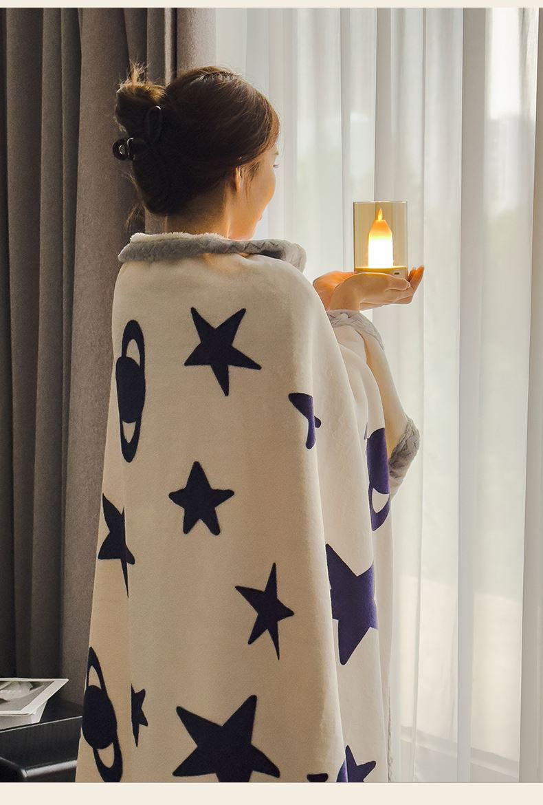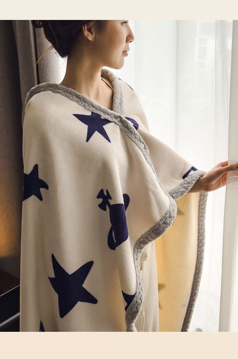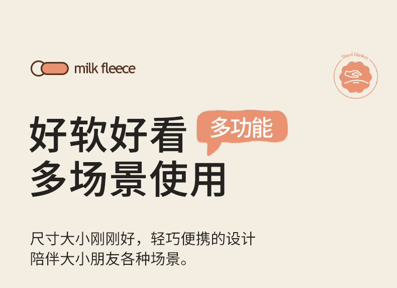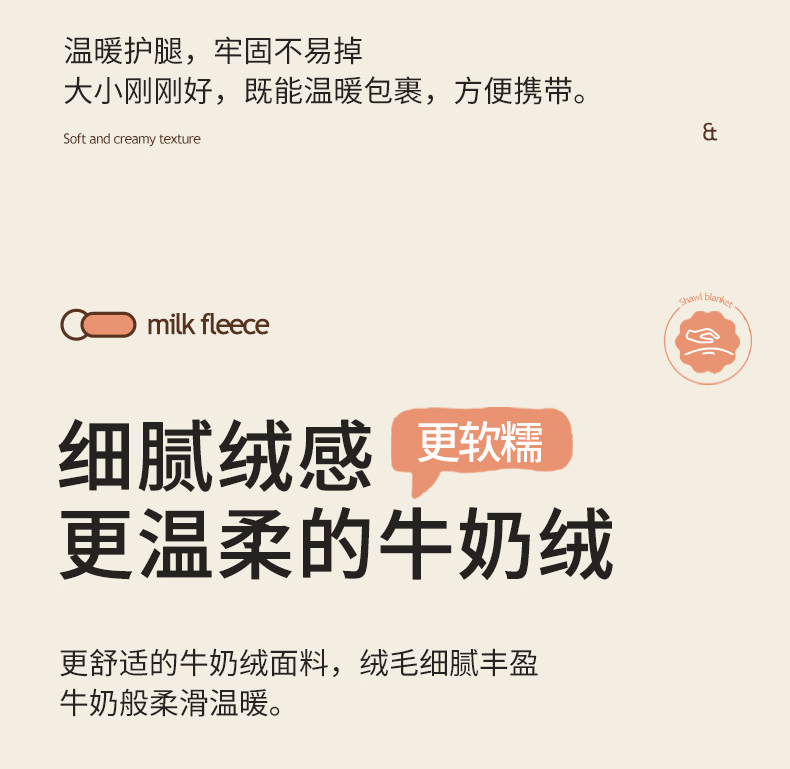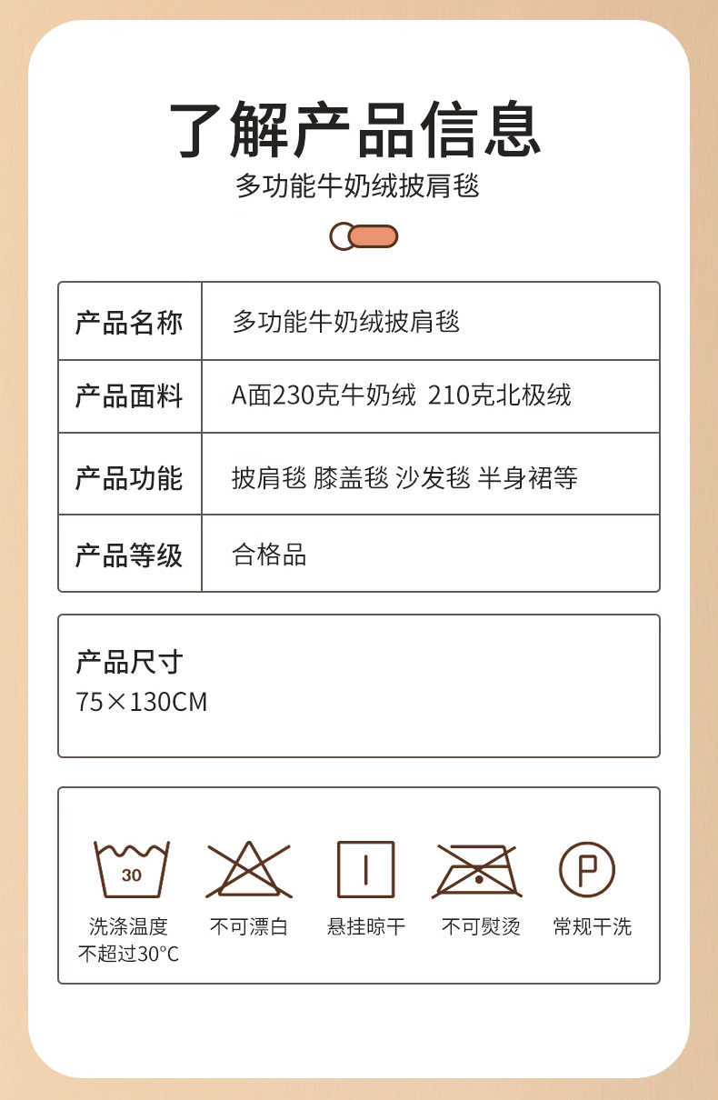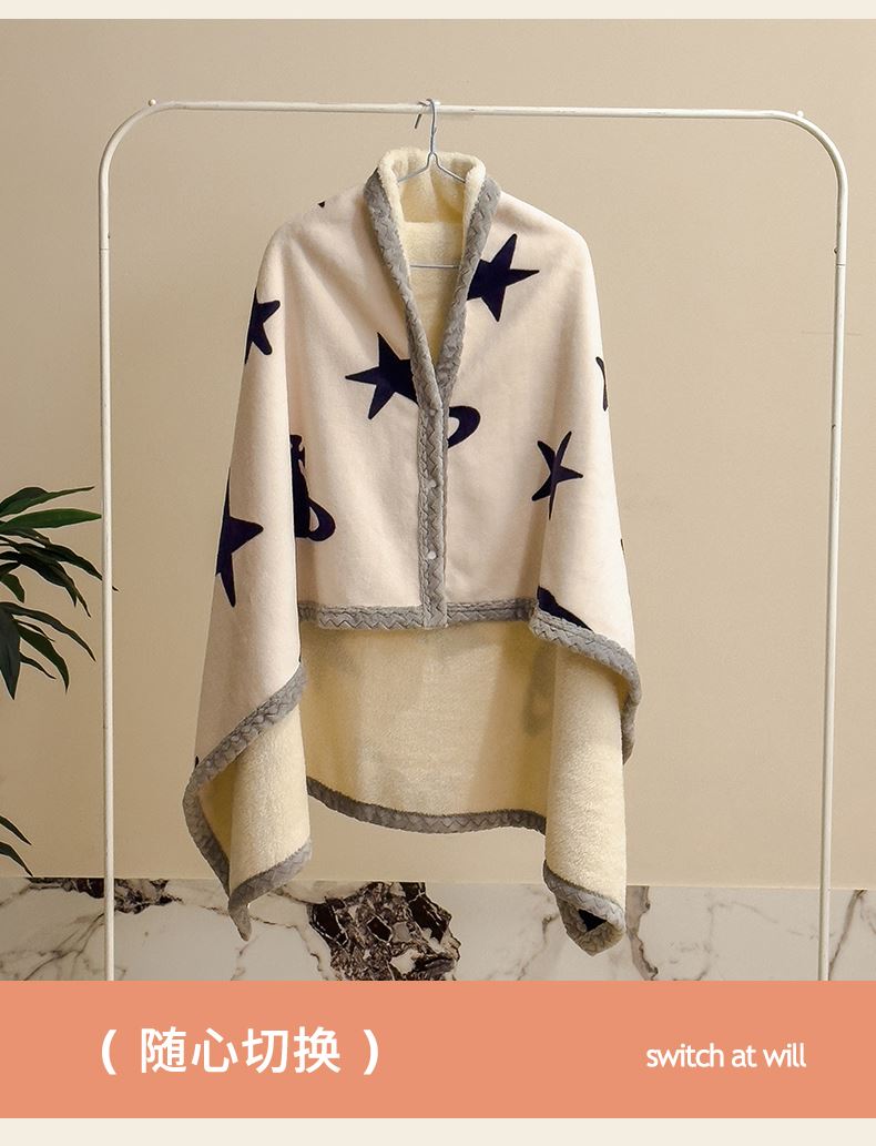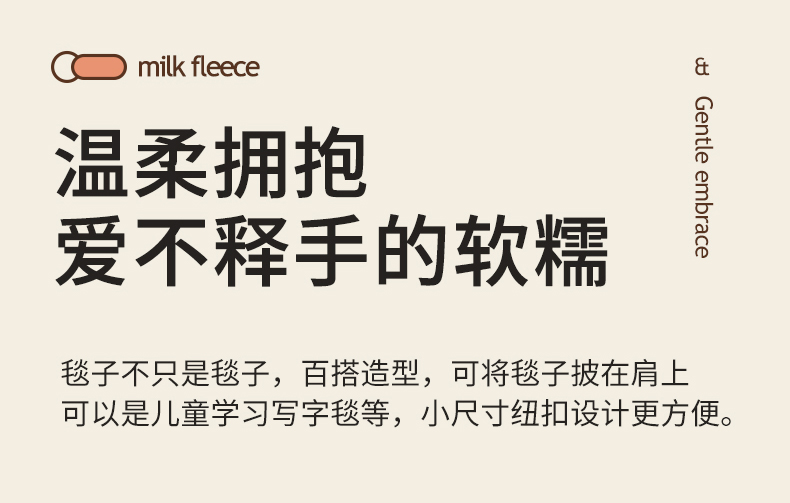 面料:舒棉绒+羊羔绒(聚酯纤维复合型) 规格:75cm*130cm 温柔拥抱爱不释手的软糯 毯子不只是毯子,百搭造型,可将毯子披在肩上可以是儿童学习写字毯等,小尺寸纽扣设计更方便。