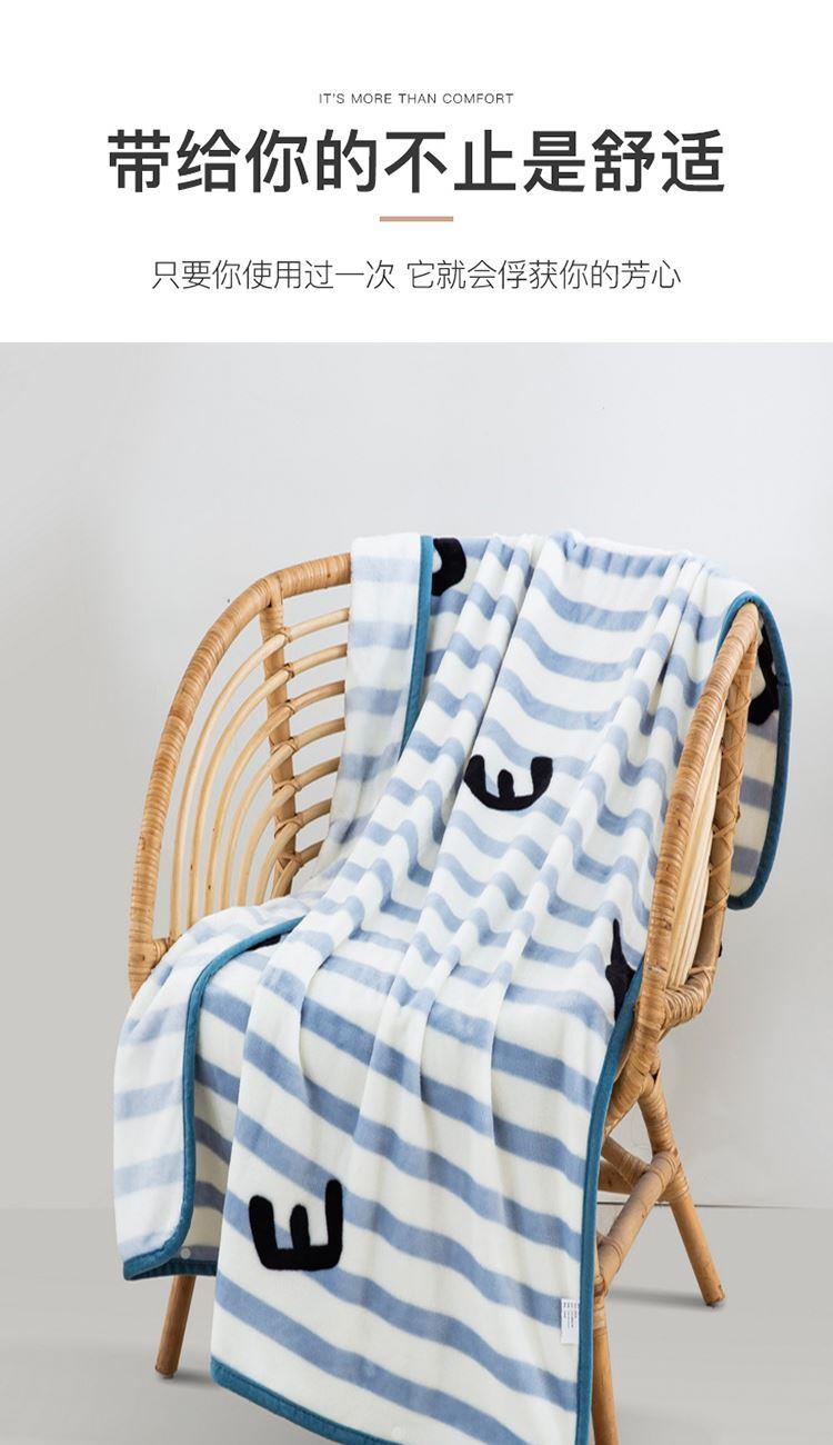 规格:100*140cm 面料:宝宝绒 克重:450g 产品包装:精美礼盒 包装尺寸:30*29*13cm 1.宝宝绒面料手感好,光滑柔软,易于清楚。 2.宝宝绒是一种独特的面料,非常适用在贴近皮肤。