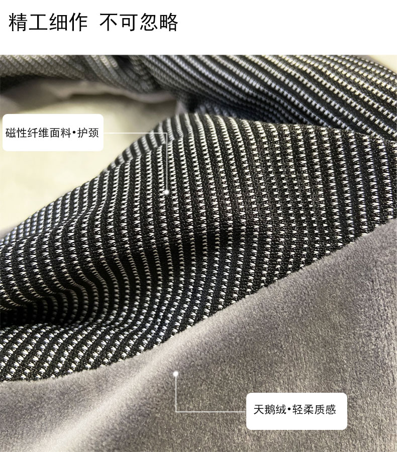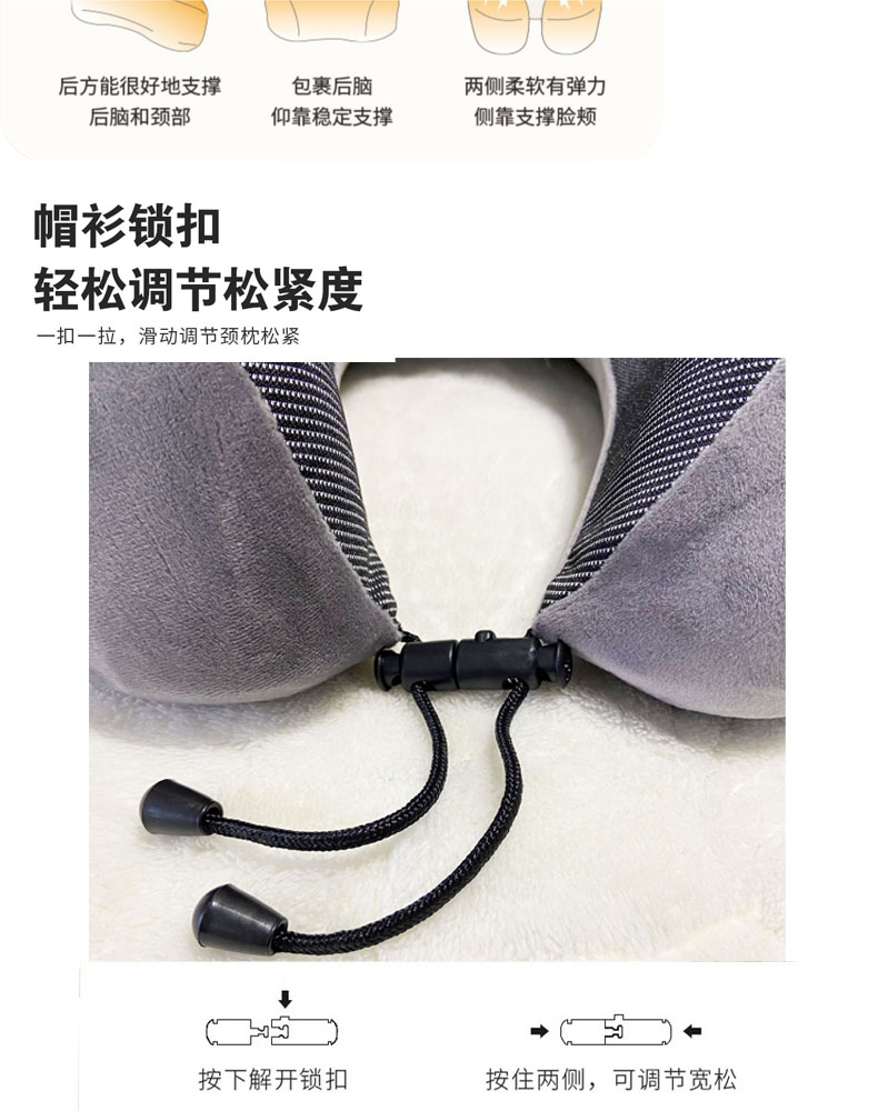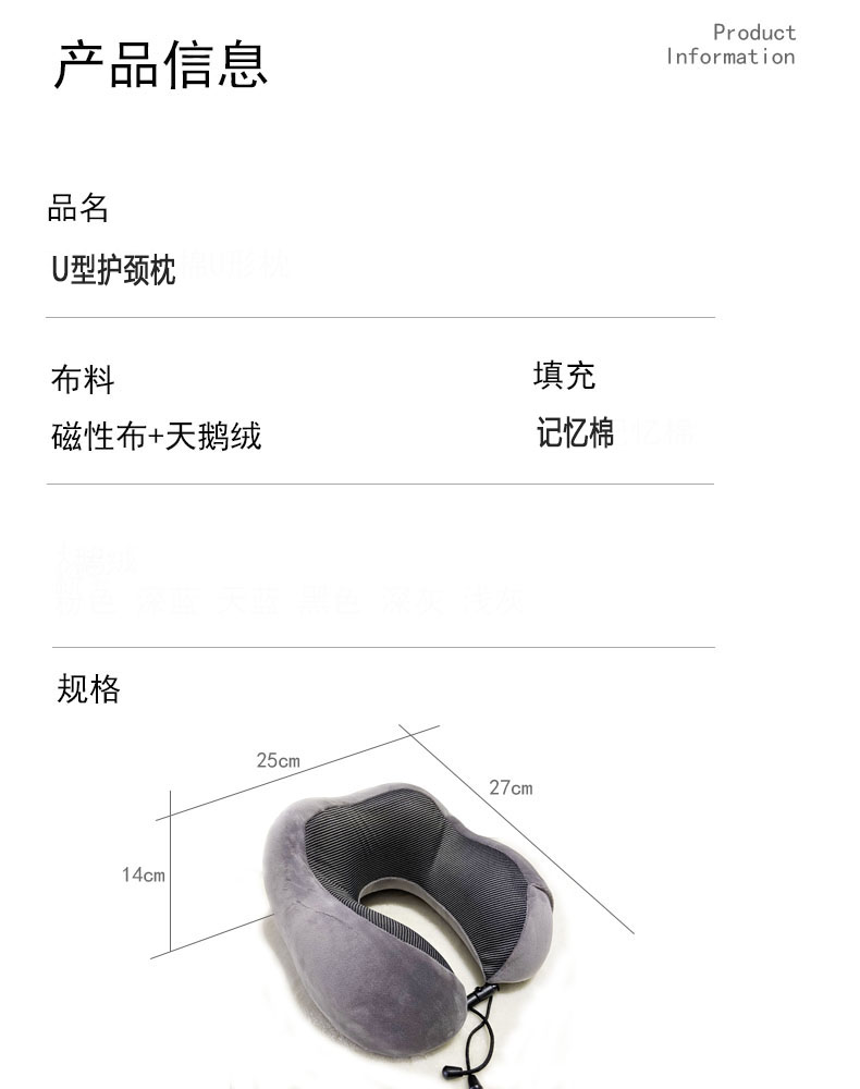 规格:27*25*14cm 面料:磁性布+天鹅绒 克重:320g 特点:驼峰U形枕,慢回弹记忆棉,吸收颈部压力。一枕多用,舒适随处而行。
