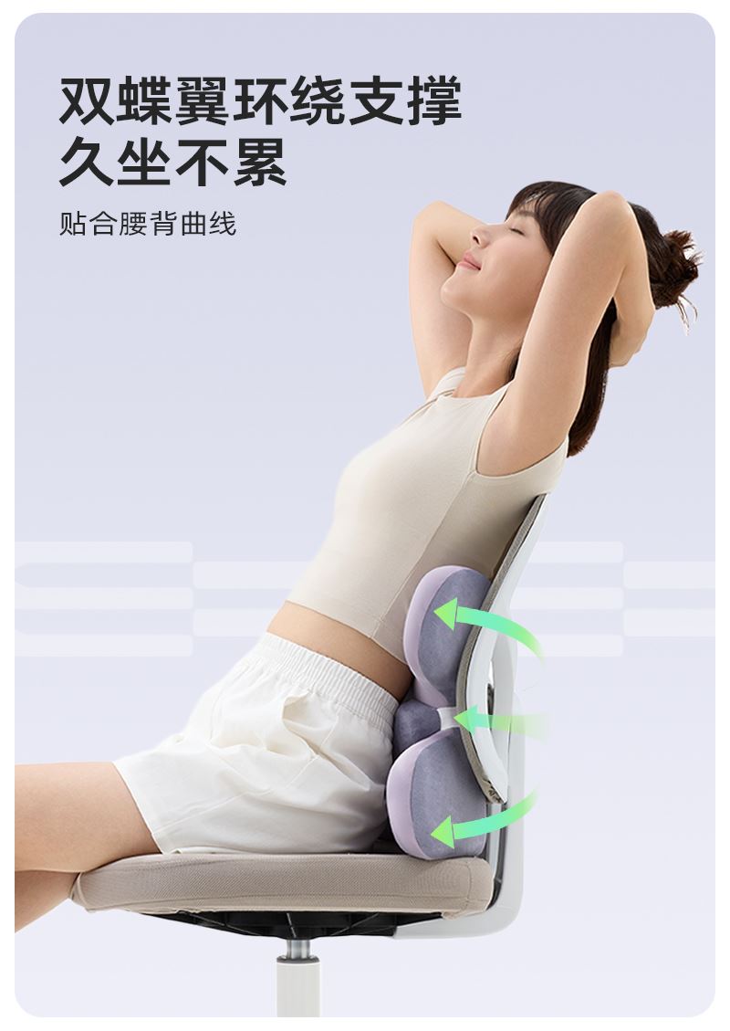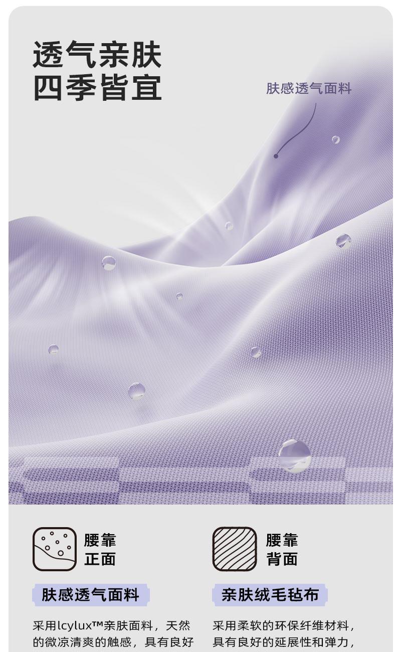 功能特点: ✓ 双层的人机设计适配每个人腰椎曲线 , ✓ 双S型贴合腰线设计 ,150cm的3d内凹深度,180度的包裹环抱 ✓ 支撑力强 :既有夹持力,也柔软舒适 ✓ 舒适面料优等品:莱卡布料,增加枕套弹性和柔软度,没有睡纹,不易沾毛,敏感肌可用; ✓ 柔软Rua内芯:美国Huntsman优质原料,温柔包裹,不易老化,不掉粉尘; ✓ 多场景使用: 汽车出行/办公午休皆可满足 颜色:奶茶杏、芋泥紫、珍珠黑 规格: ✓ 腰枕*1 ✓ 防尘PP袋*1 ✓ 单台包装尺寸:340*185*185 ✓ 单台重量:850g(含彩盒) ✓ 规格:10台