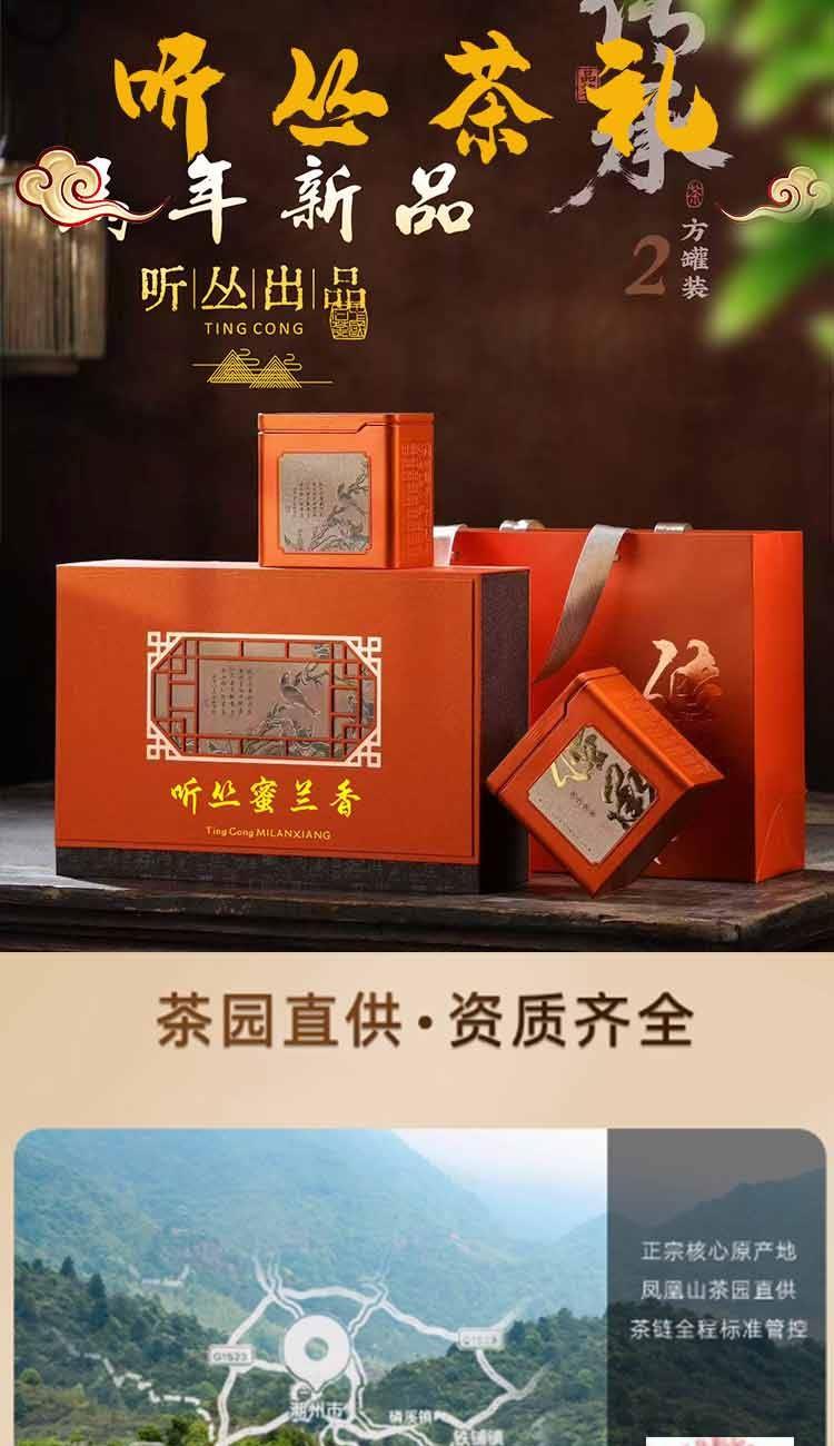 【茶名】:蜜兰香 【重量】:250g 【配件】:铁罐+礼盒+手提袋 【产地】:广东·凤凰山 蜜兰香 特点 干茶外形紧结肥硕,色泽红褐或乌润,条索紧结较直,具有光泽。 香气浓郁,独具兰花香和甜美的蜜香,两者交织在一起,形成独特的“浓蜜幽兰”特韵。 汤色 汤色橙黄透亮,清澈明亮,表现出茶叶的高品质。 耐泡性!