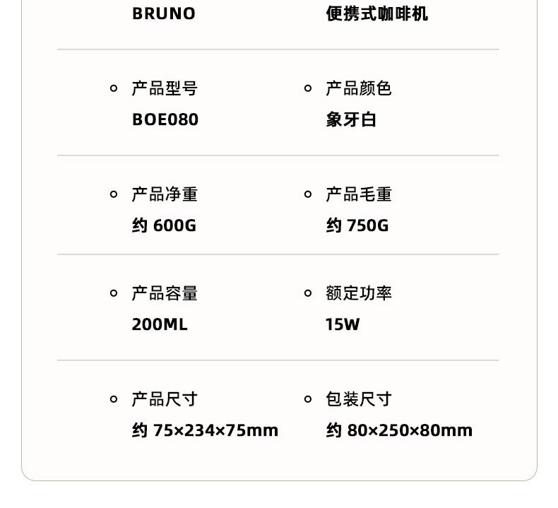 BRUNO便携式咖啡机套装BOE080-BE-GIFT