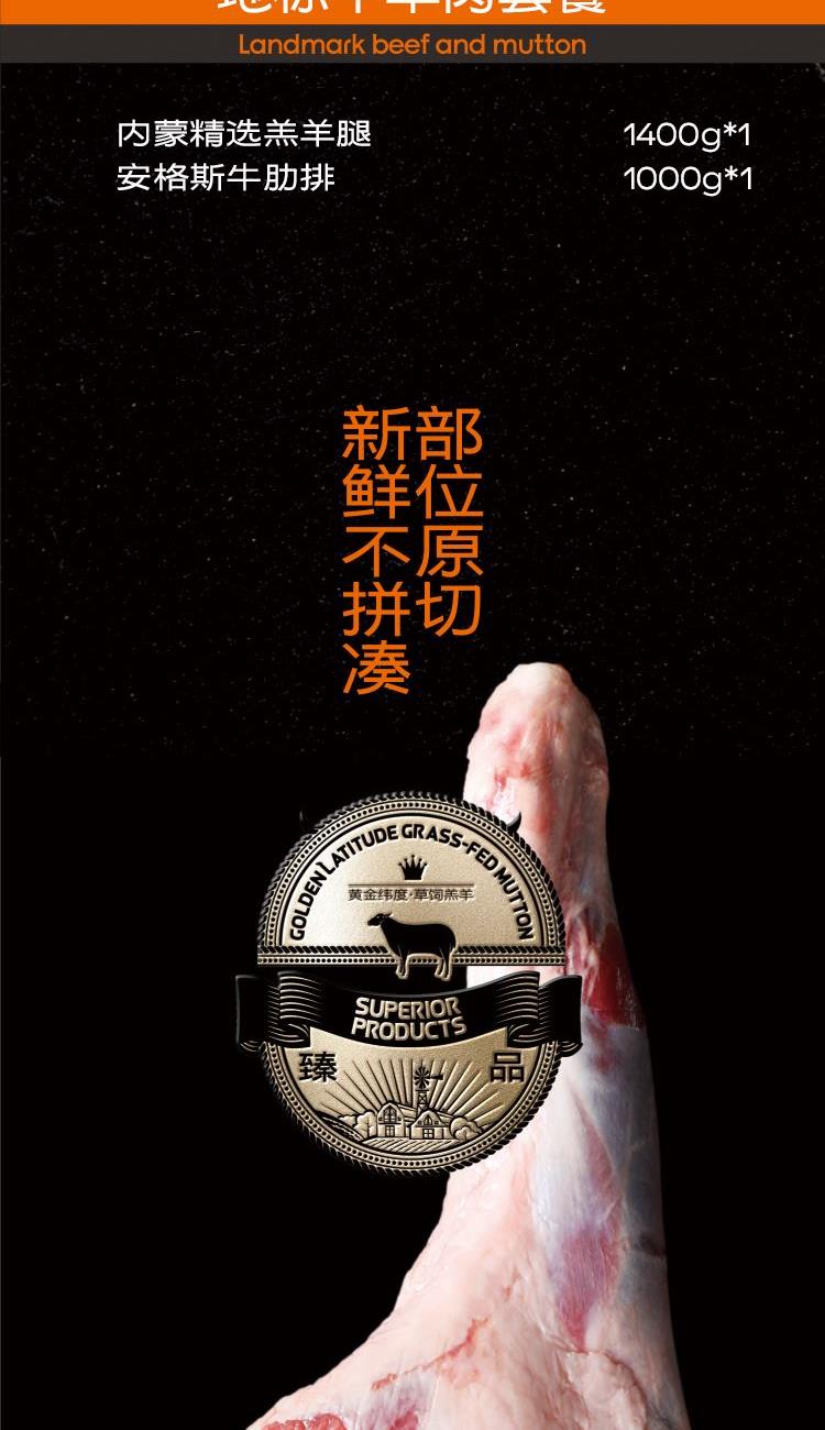 内蒙巴彦淖尔精修羊腿1400g*1 澳洲谷饲安格斯牛肋排1000g*1