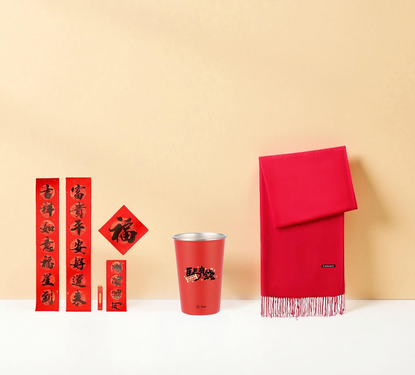 产品材质:围巾:仿羊绒聚酯纤维 对联:铜版纸 杯子:304不锈钢 产品规格: 围巾:200*70cm 随手杯:350ml 对联:1.3M 产品组合:(围巾随手杯对联)