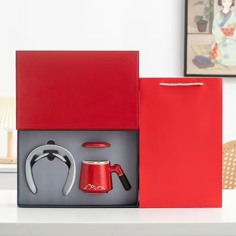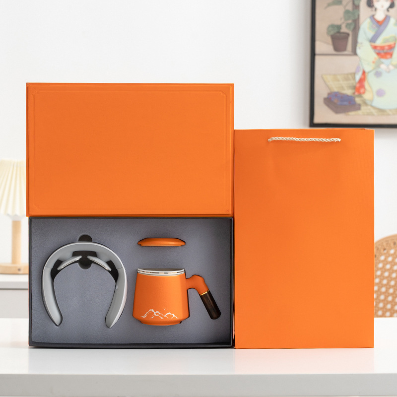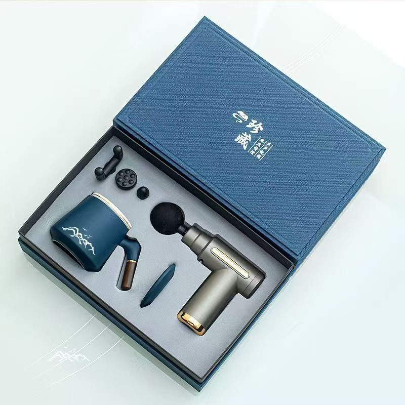 配 制: 1办公杯 1筋膜枪/颈椎仪 1锦盒 手提袋 规格: 办公杯14.5*10.4cm 礼盒38.2*11cm 筋膜枪:17.4*14cm 工艺:商务实用性礼品,上班族刚需产品。粗陶办公杯,带茶漏,专业级筋膜枪,6档变速,4种按摩头,液晶触屏,深度缓解肌肉酸胀。。