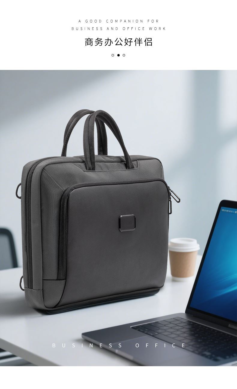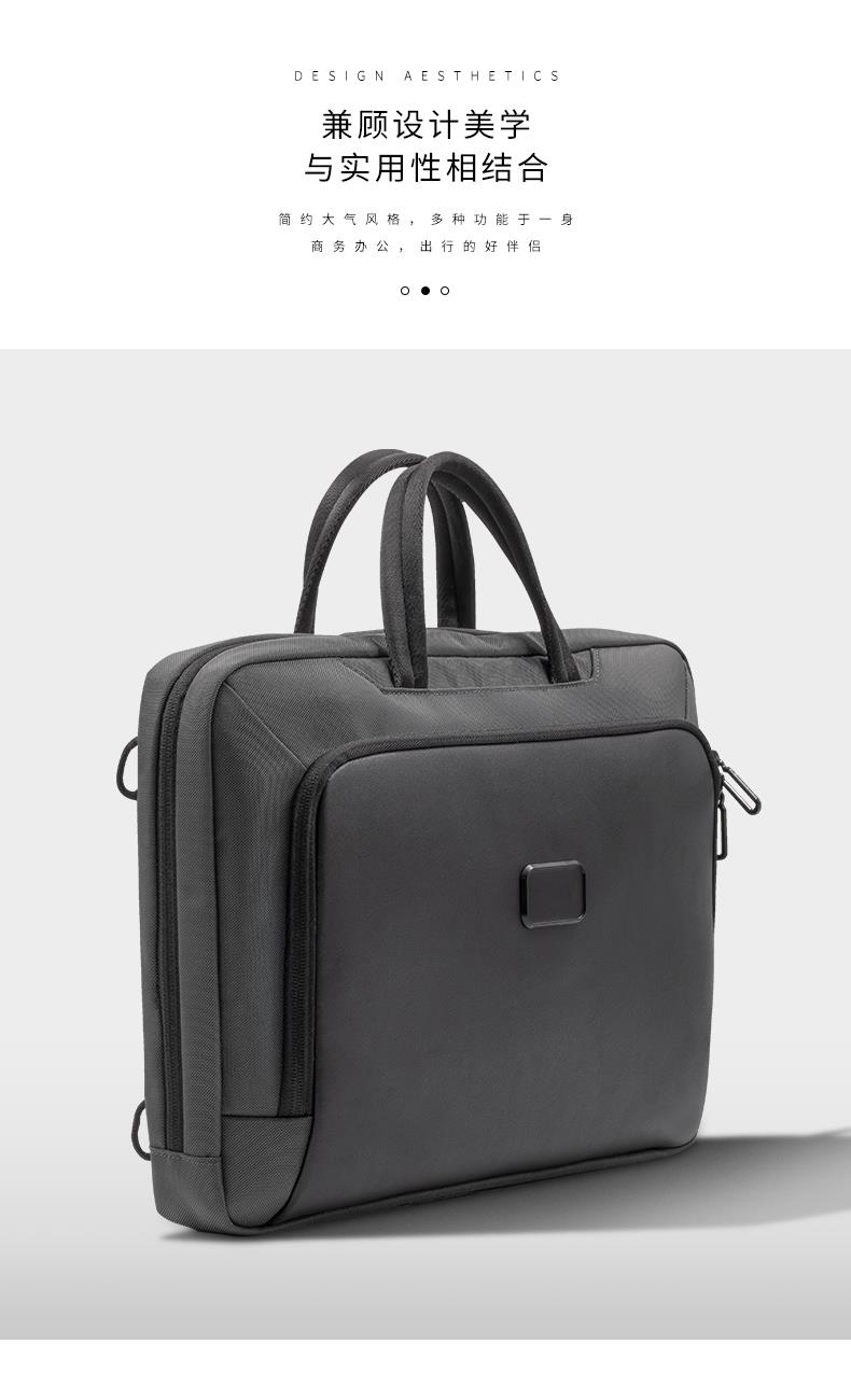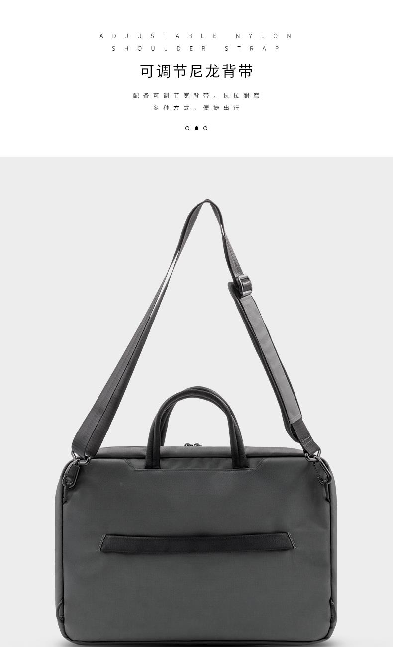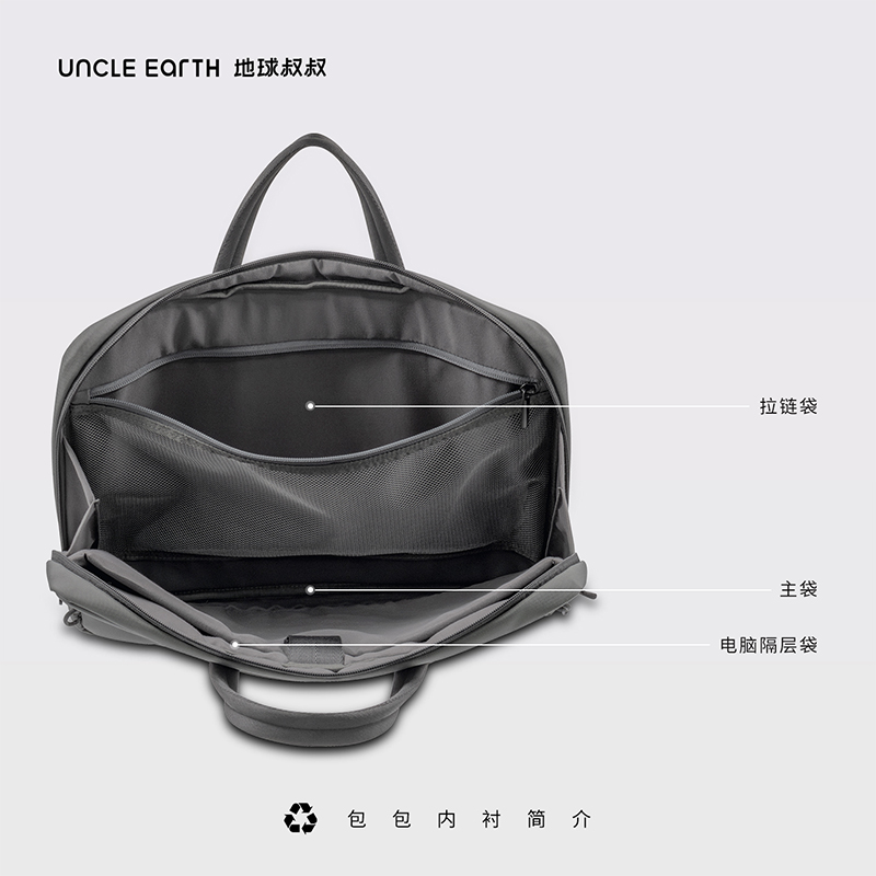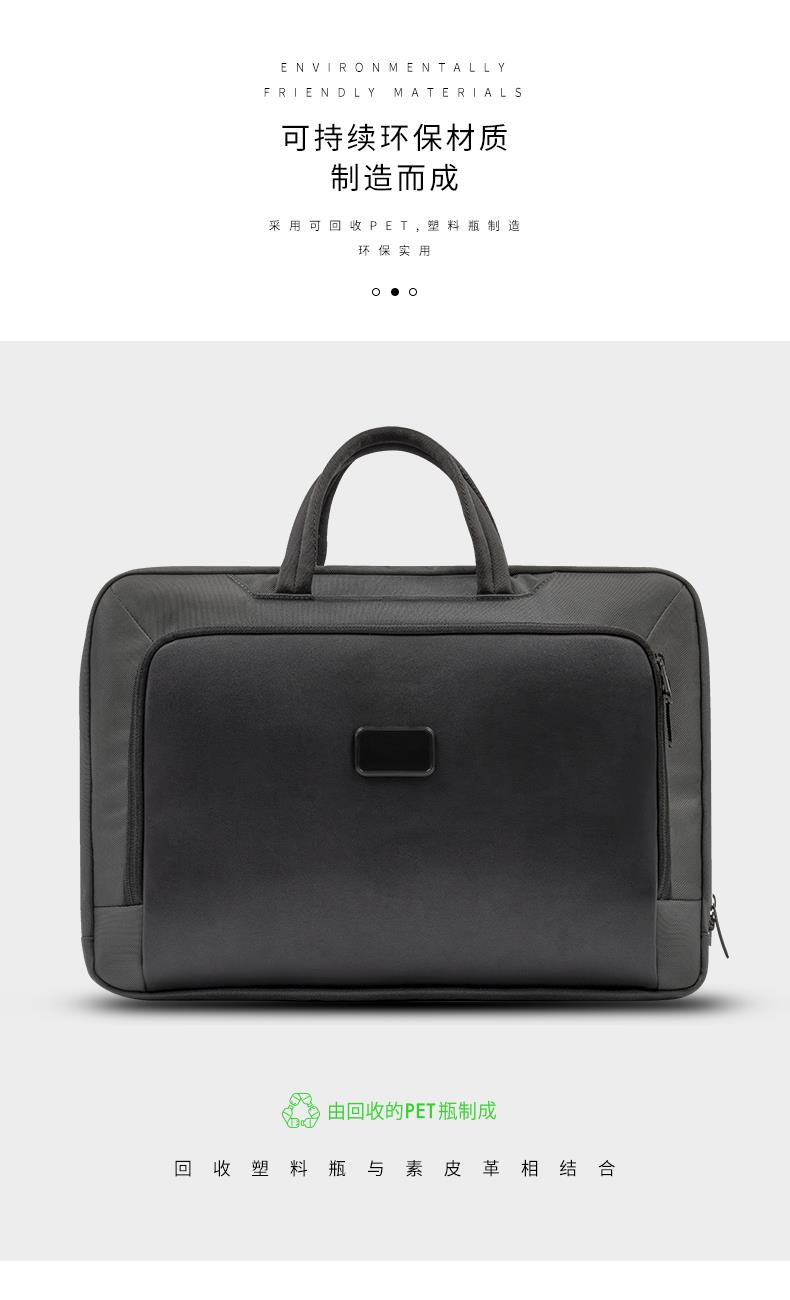 · 回收塑料瓶RPET制成,相当于5.5个500ML回收塑料瓶重生再利用· 可拆卸式背带,可斜挎,手提,斜挎背包,三种携带方式· 科学收纳隔间,内部网状隔层,告别翻找并带有1CM厚度电脑笔记本隔间填充物,适配16英寸笔记本电脑· 配备前仓,用于笔,钱包和小物品的储存· 背部配备拉杆带,可固定在行李箱上· 防水防污材料,搭配纯素皮装饰,精致又简约