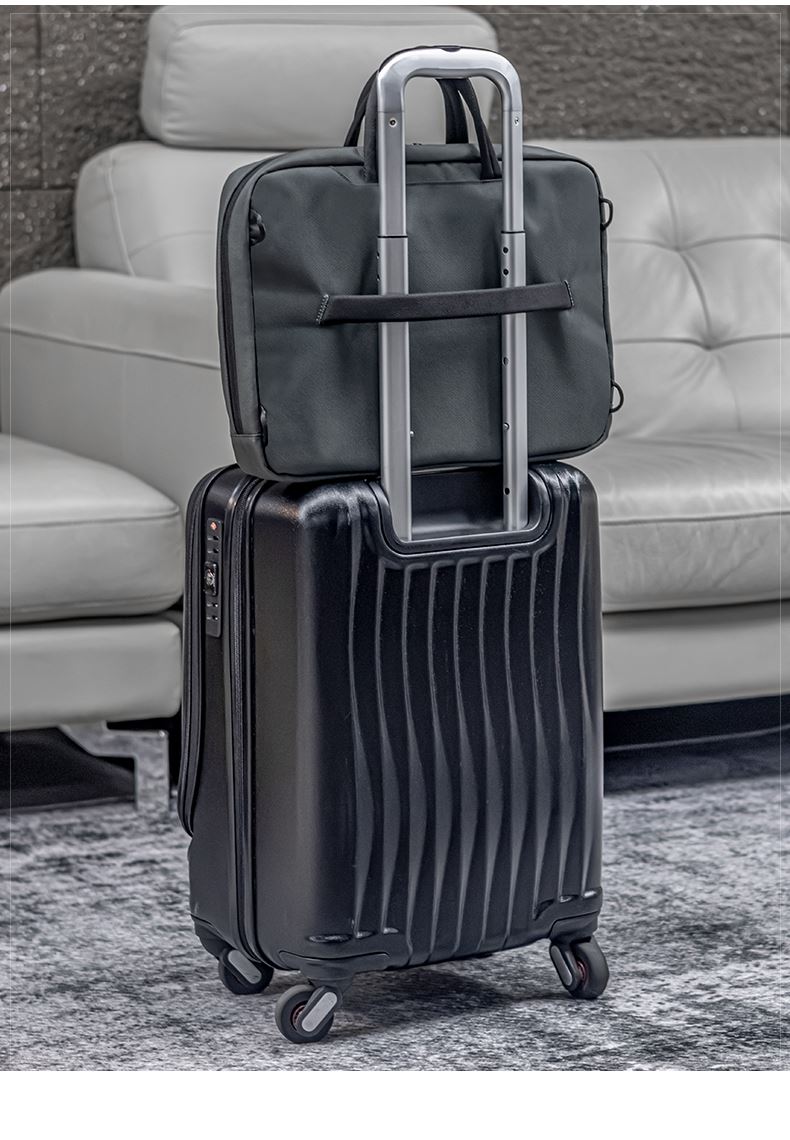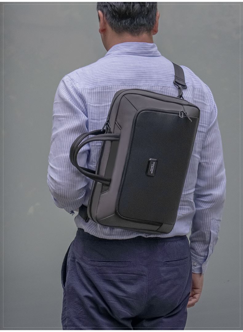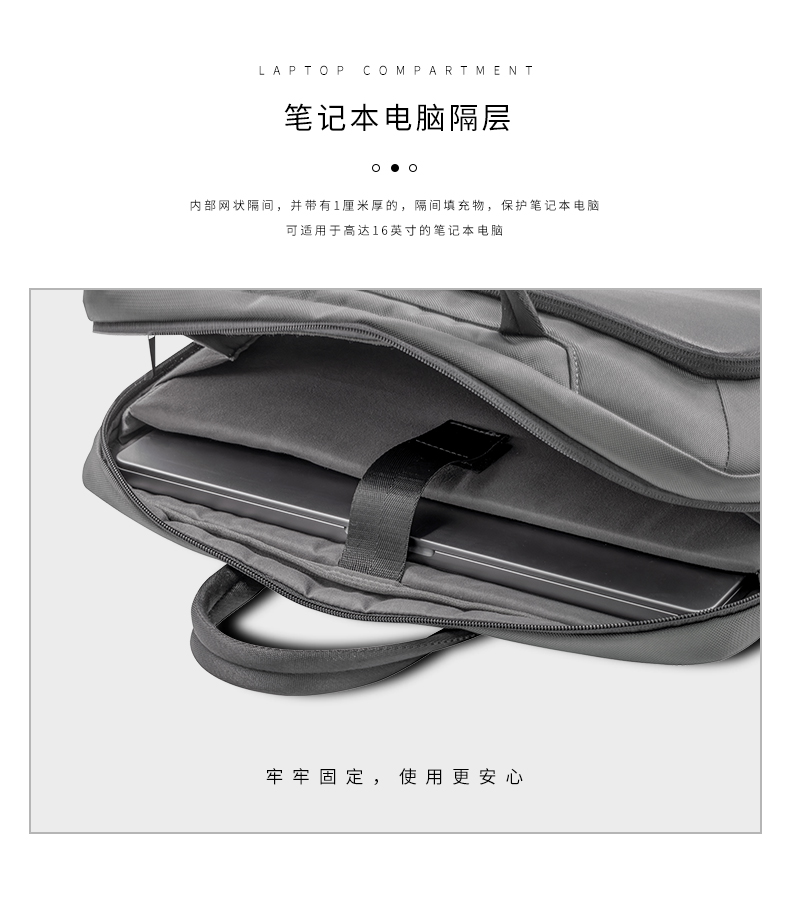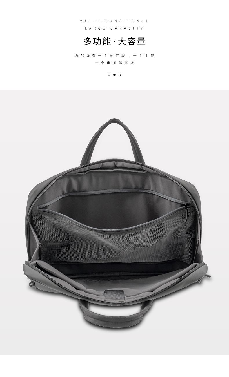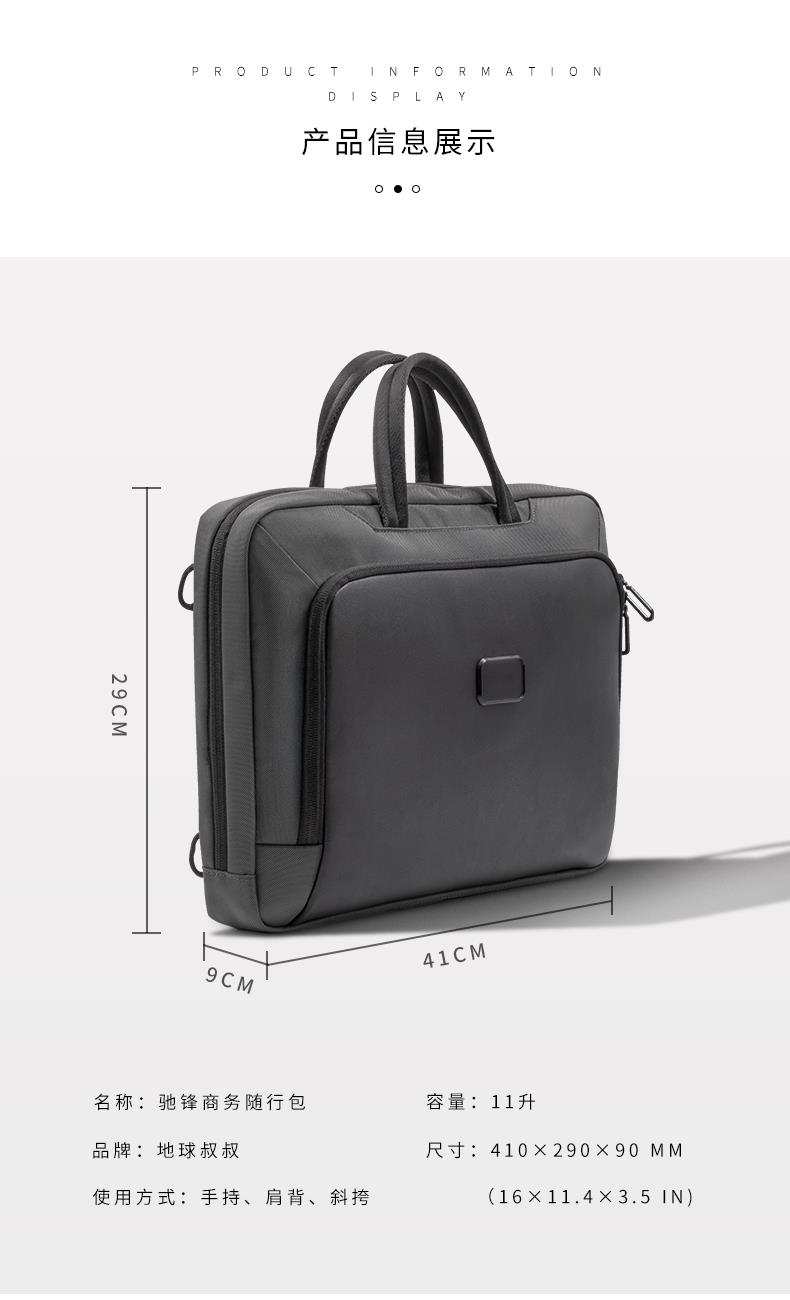 · 回收塑料瓶RPET制成,相当于5.5个500ML回收塑料瓶重生再利用· 可拆卸式背带,可斜挎,手提,斜挎背包,三种携带方式· 科学收纳隔间,内部网状隔层,告别翻找并带有1CM厚度电脑笔记本隔间填充物,适配16英寸笔记本电脑· 配备前仓,用于笔,钱包和小物品的储存· 背部配备拉杆带,可固定在行李箱上· 防水防污材料,搭配纯素皮装饰,精致又简约