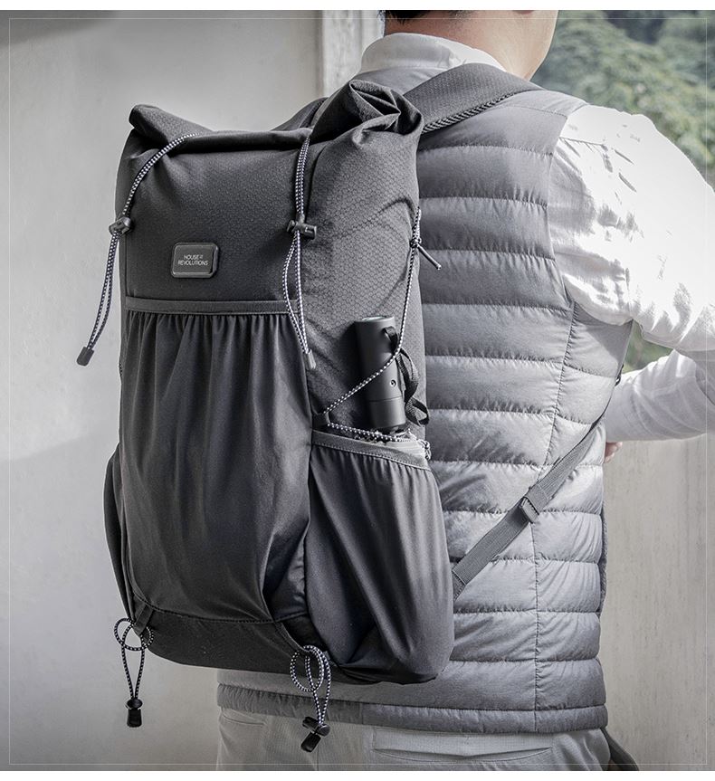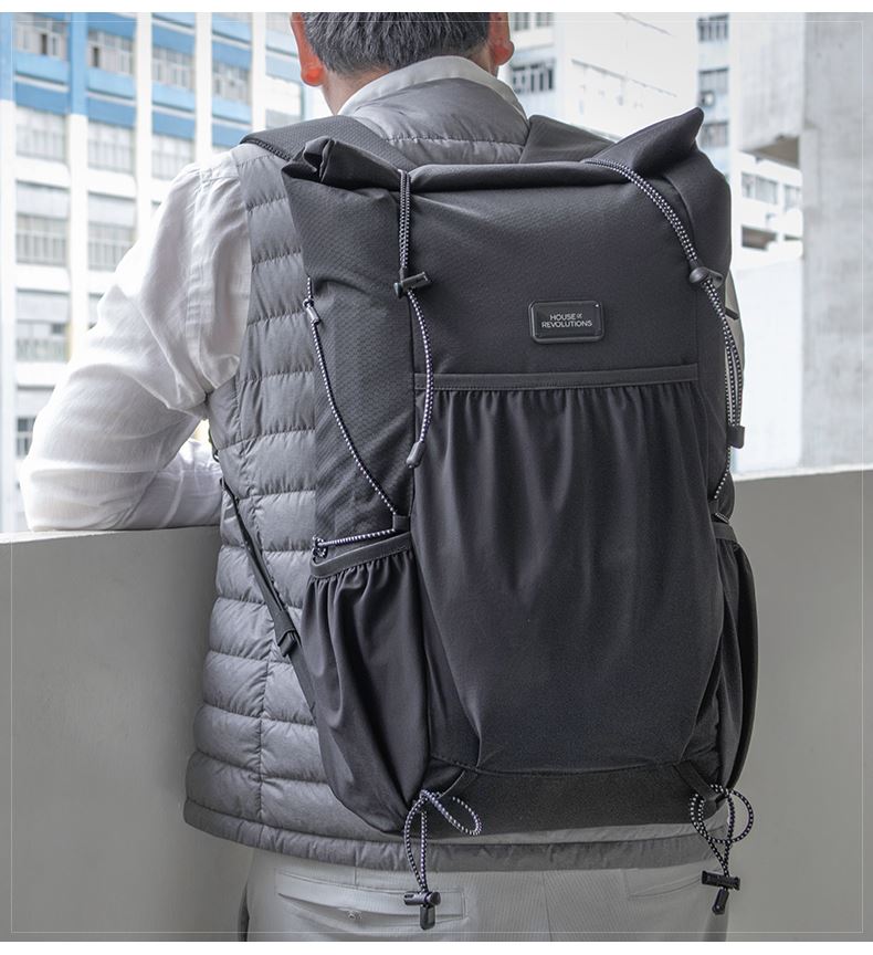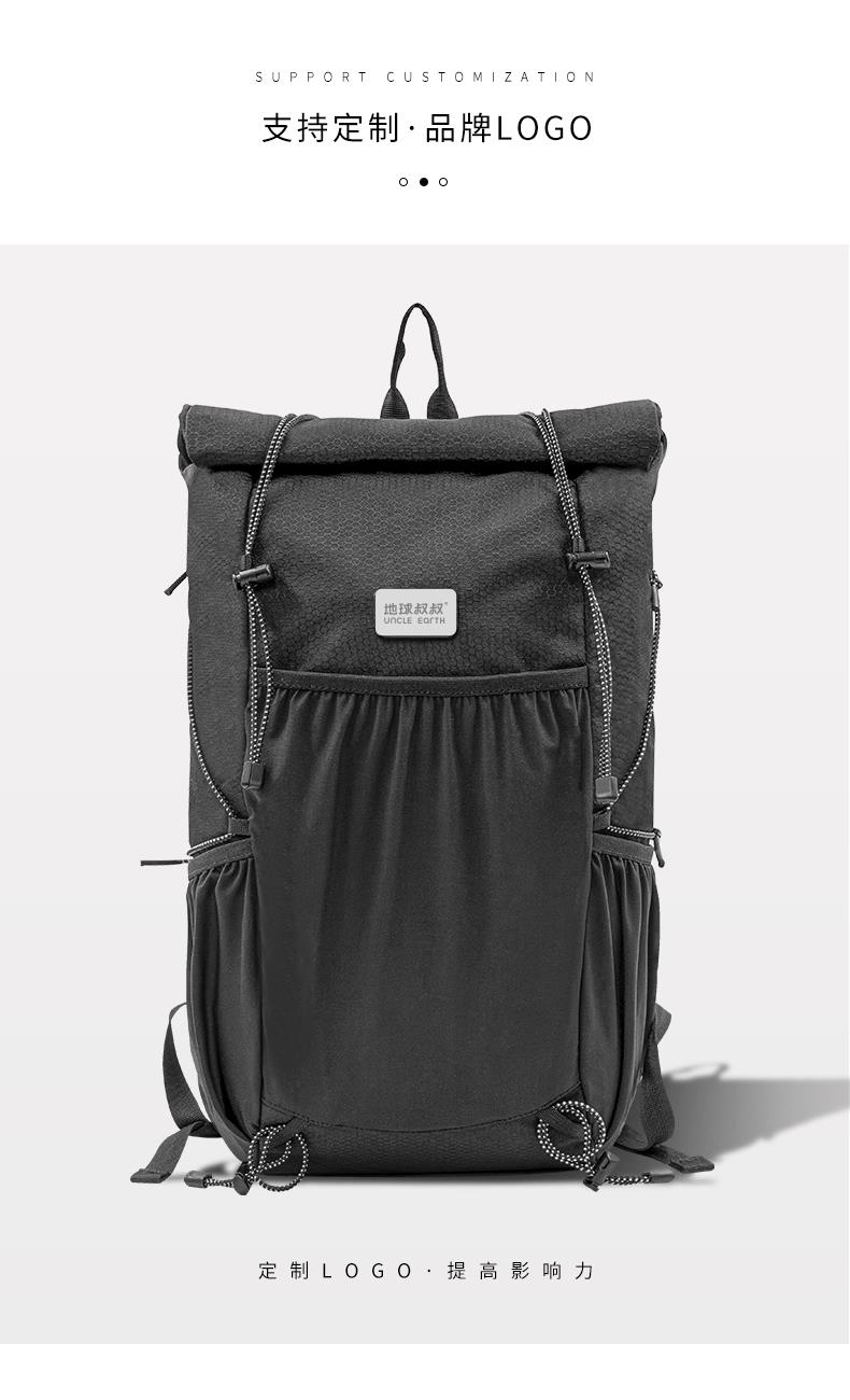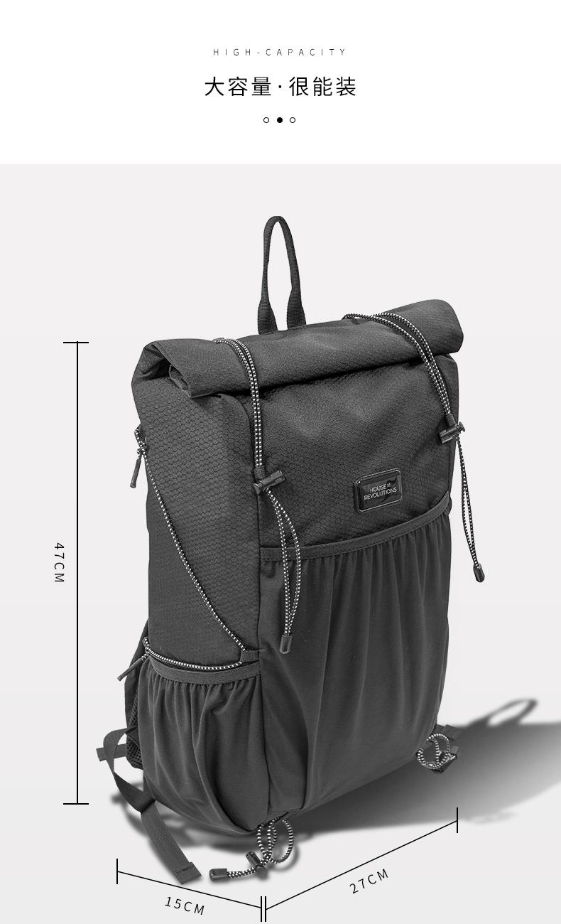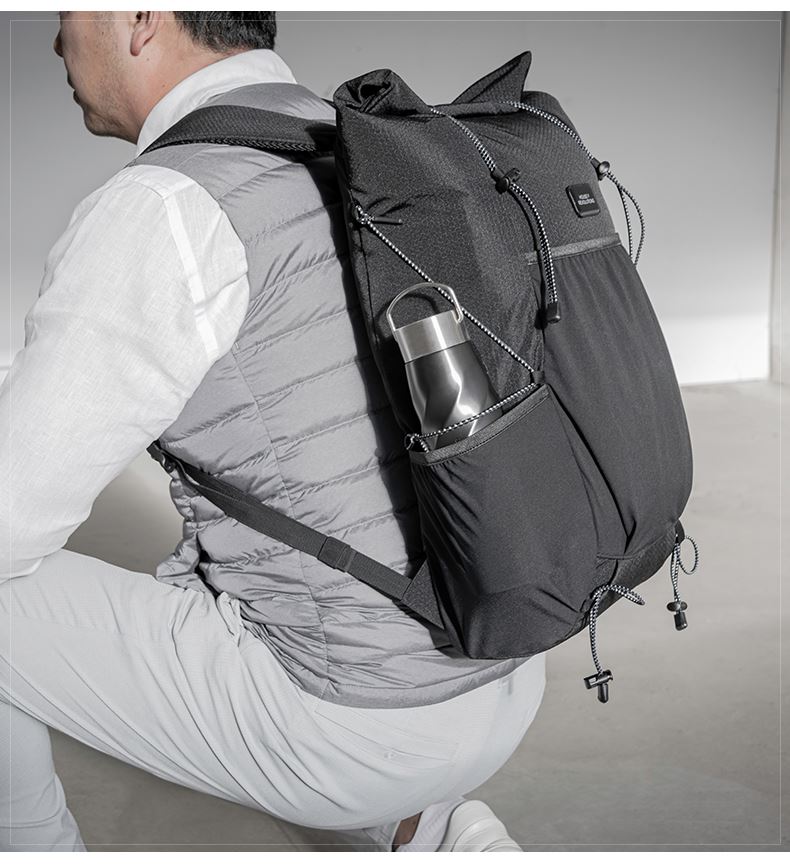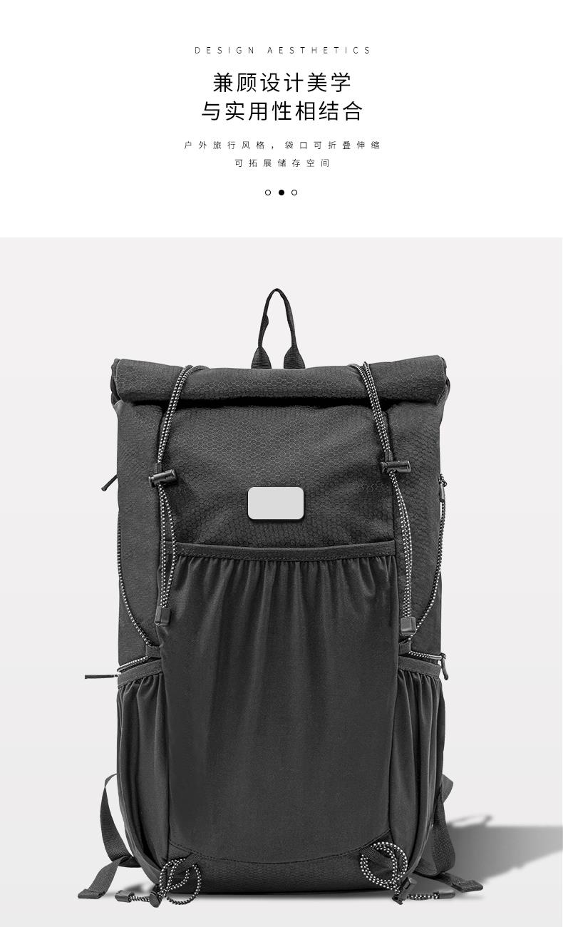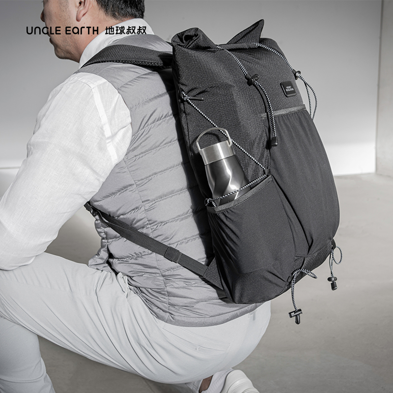 · 由回收塑料瓶RPET制成,相当于回收利用了20个500ml的PET塑料瓶· 户外紧急口哨,夜间反光条,确保道路物品安全· 全卷式闭合储存空间更大化,便于收纳· 防水防污面料,无畏雨天,透气肩带,可 存放手机· 软垫可容纳16寸笔记本电脑隔间· 外带侧边以及中间弹力口袋,可存放瑜伽垫,水瓶以及雨伞· 获得香港2024年设计奖
