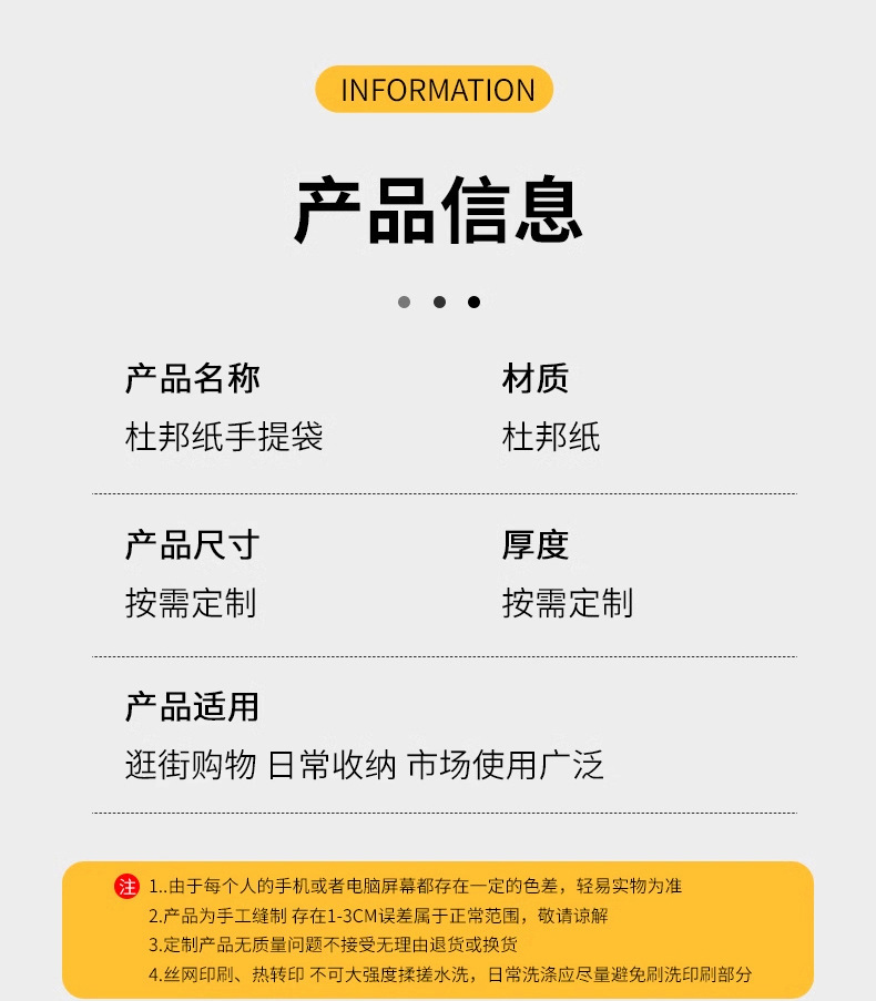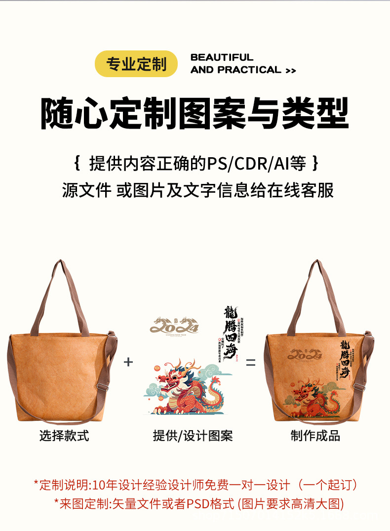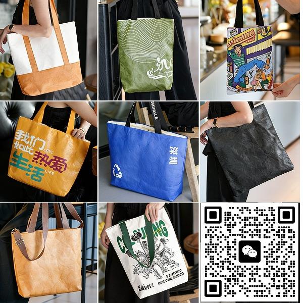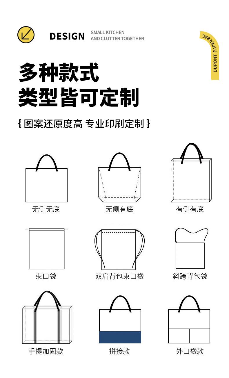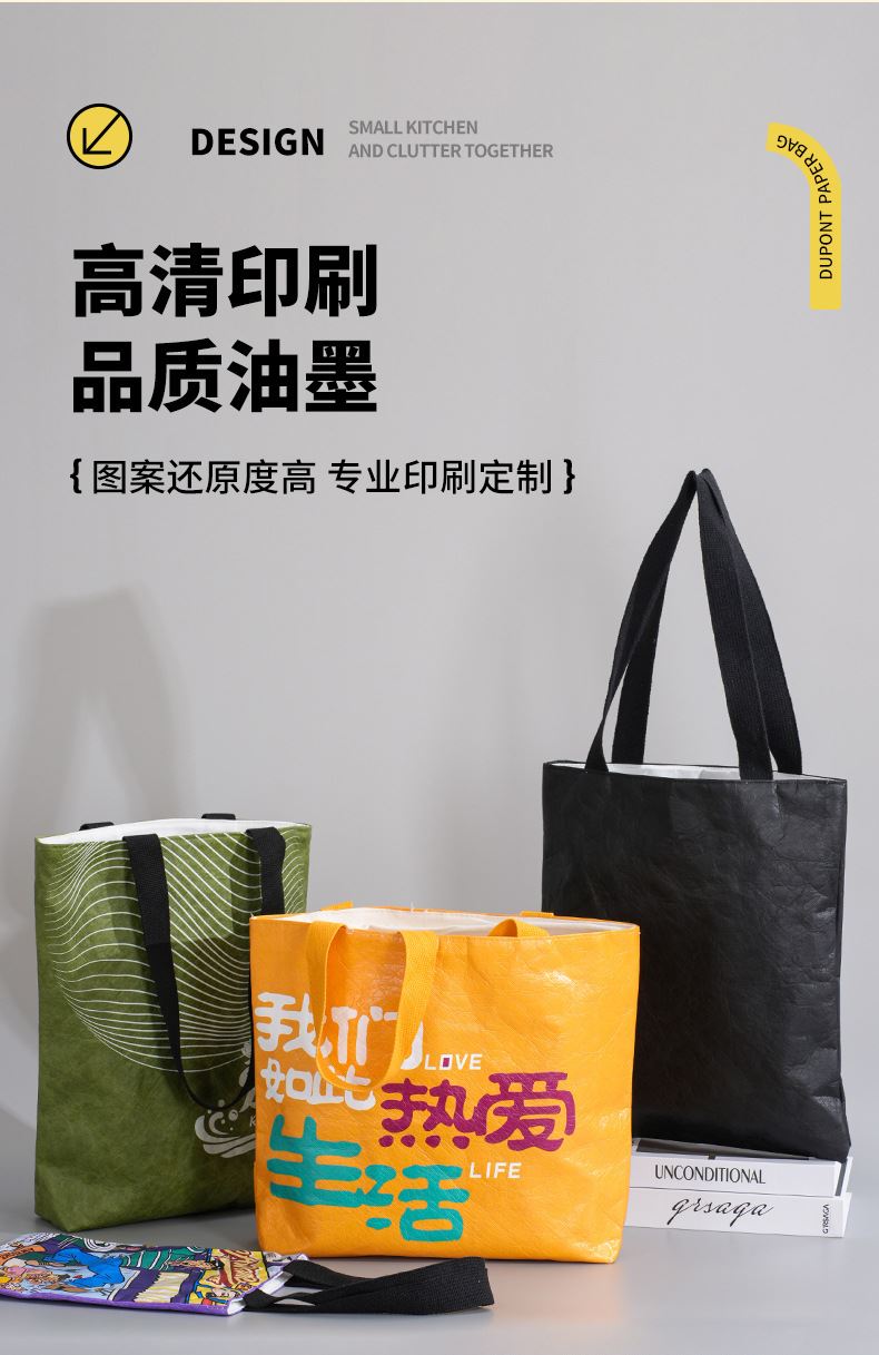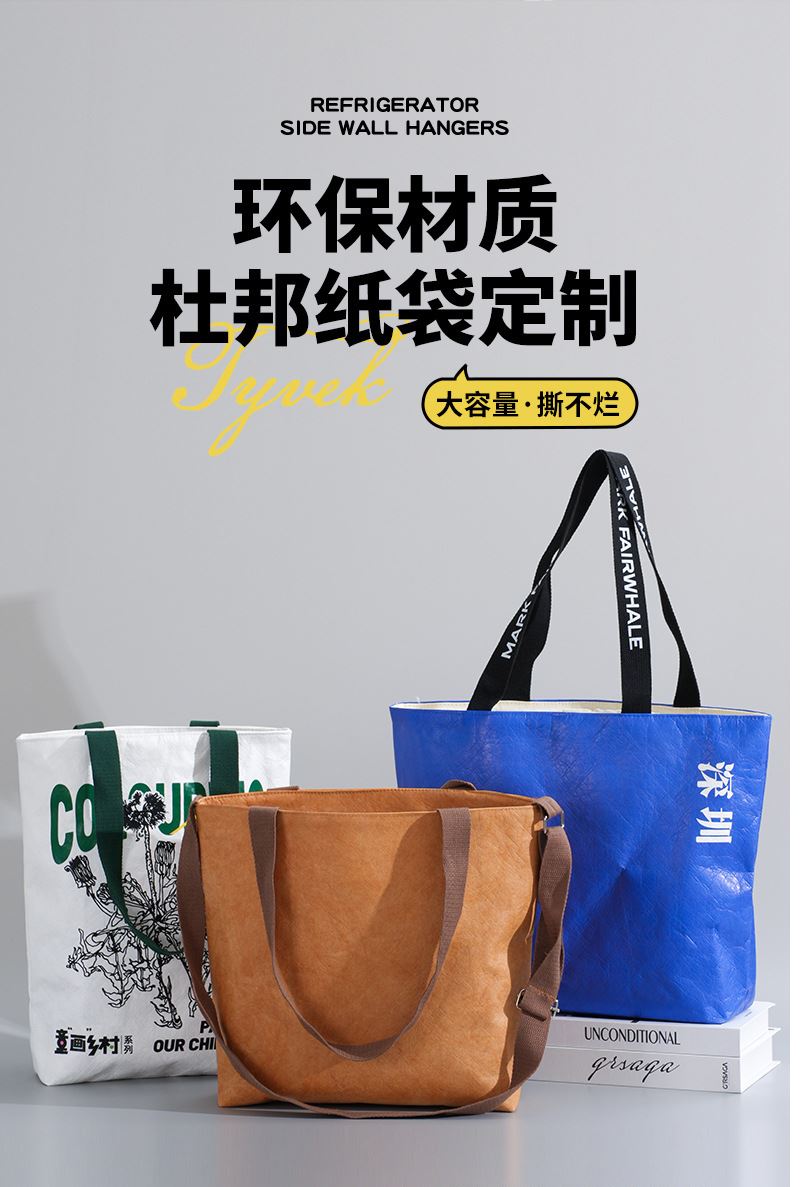 杜邦纸袋定制_复古牛皮纸大容量托特包_可印logo环保购物手提袋