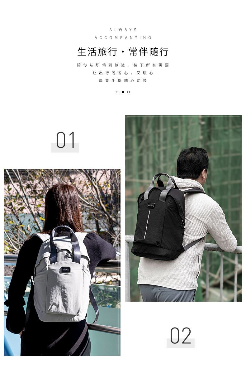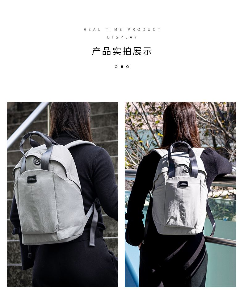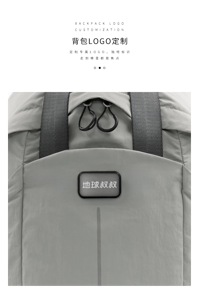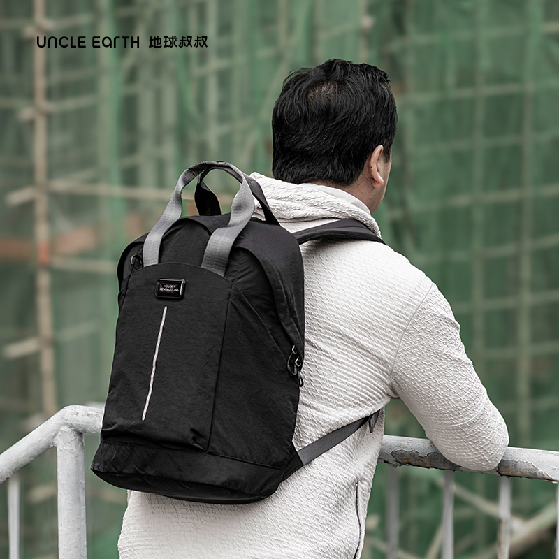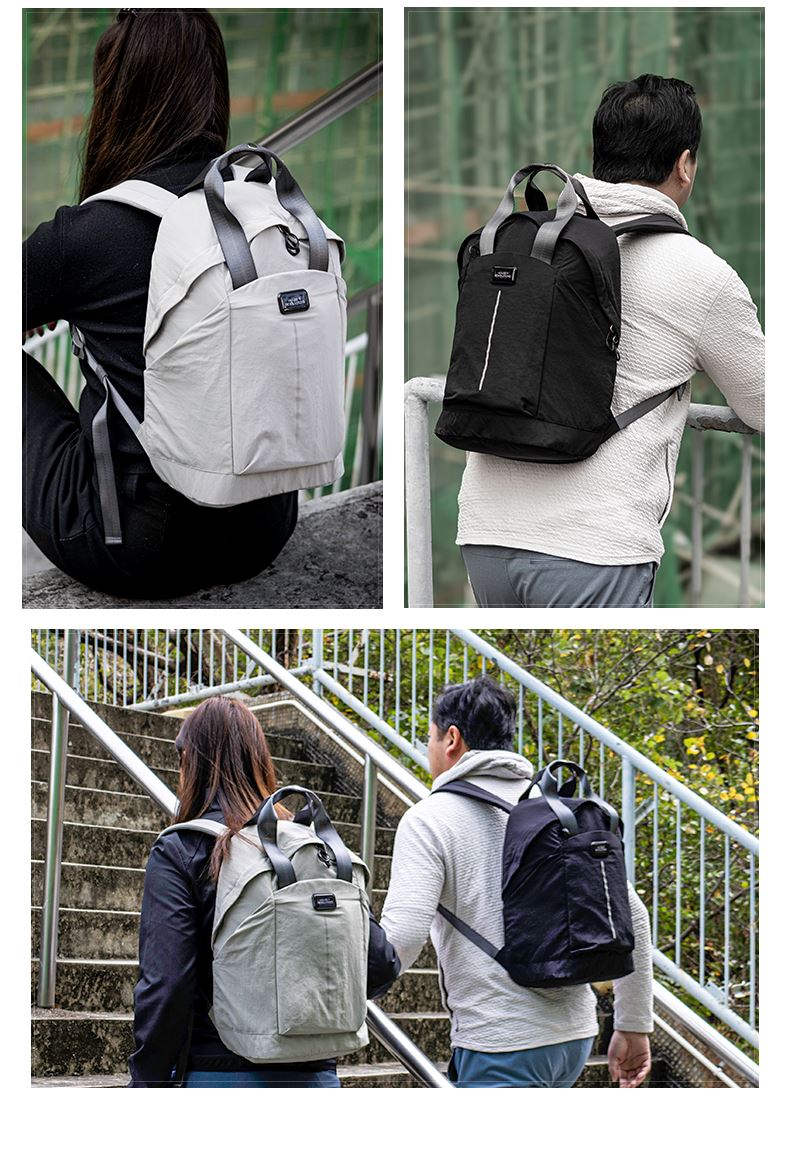 · 由回收渔网制成· 防水防污功能,超轻重量仅500克,超耐用回收尼龙· 17L容量,拉杆箱背带,超适合旅游健身或者日常使用· 带衬垫的笔记本电脑套,可容纳16英寸笔记本电脑隔层· 两侧超深侧口袋,可存放水瓶和雨伞· 软衬垫背部,人体工程学设计,能减少时间佩戴的压力· 反光细节,夜晚人身安全。2种颜色可选:云灰色、哑黑色。