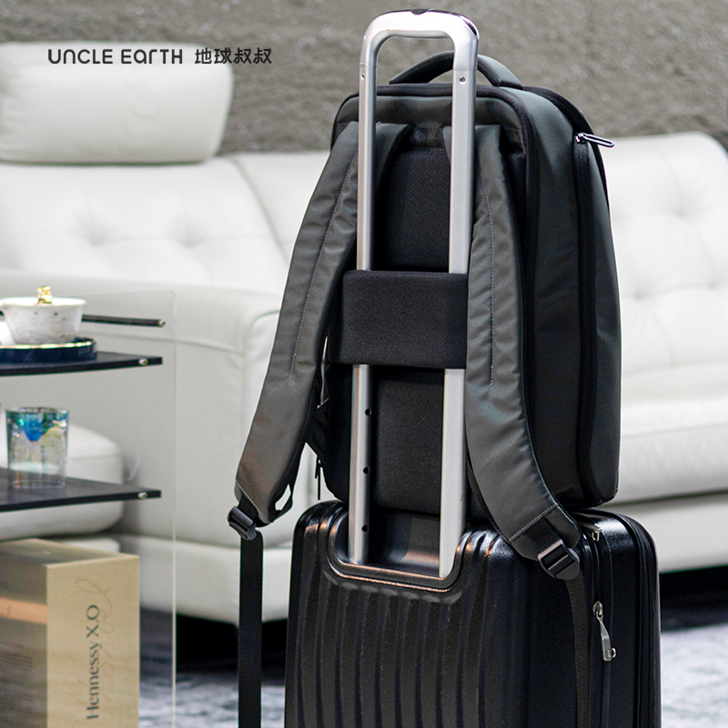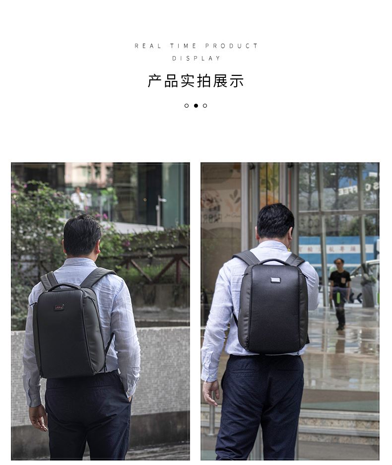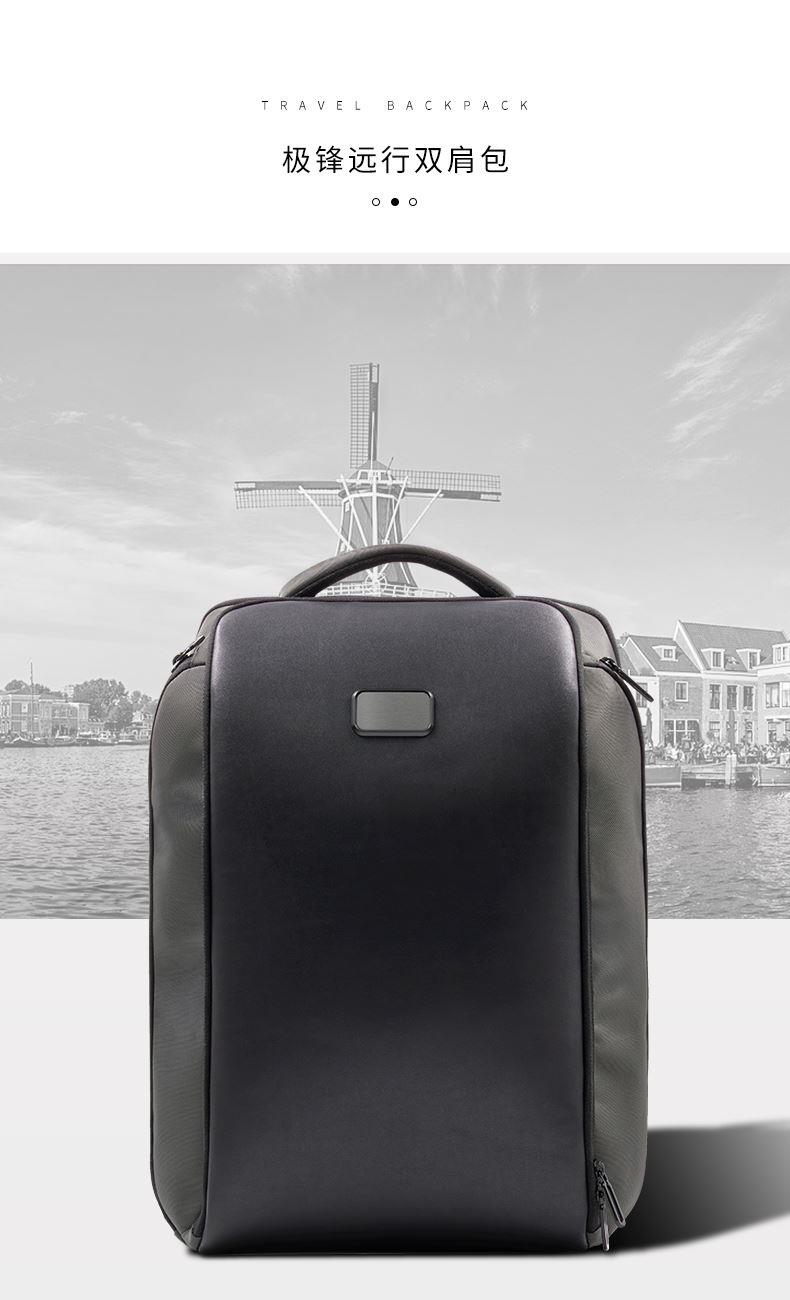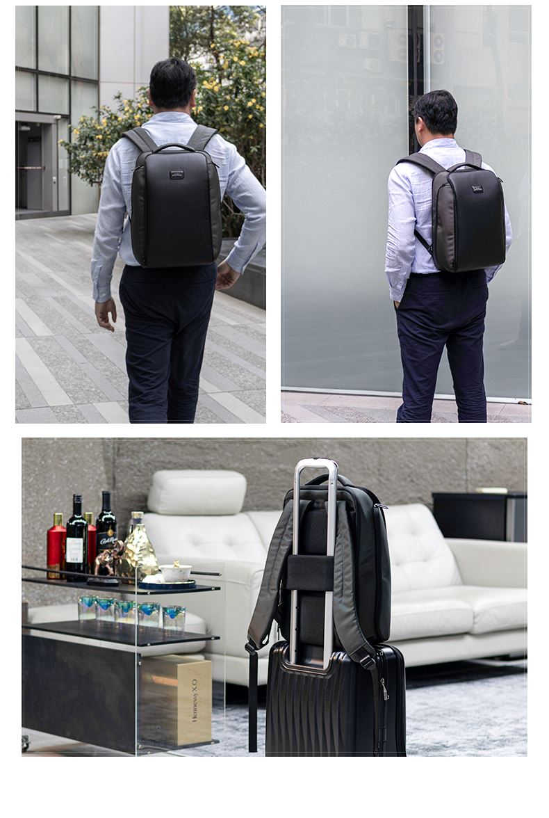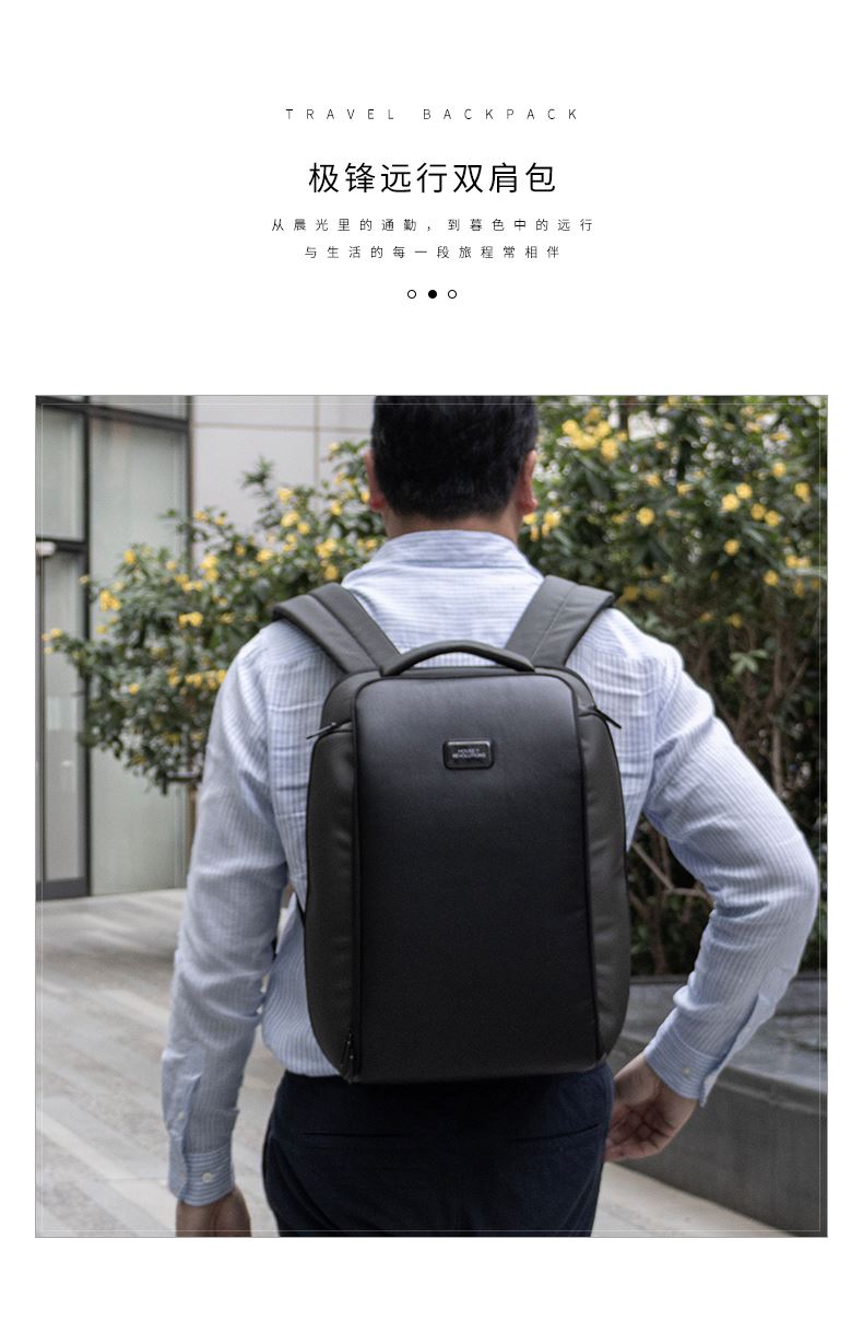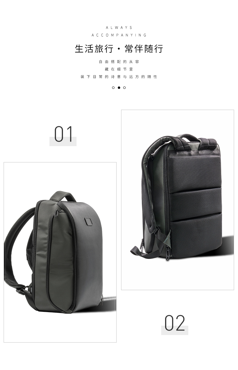 · 由回收素皮制成,搭配6个回收塑料瓶制成的装饰搭配· 防水防污材料,兼具办公和休闲,配备行李箱背带,方便固定在行李箱上· 可携带16寸电脑,背垫和前袋皆可打开,三明治结构前袋专用配件隔层,适合存储数据线等小物件 · 主仓配备软衬眼镜隔层,不怕眼镜刮花磨损,保护您的眼镜的安全· 隐藏式防盗背板,用于储存钥匙,钱包等重要财物· 背带上配备口袋,便于身份证,手机等证件的快速取用· 拥有RCS国际回收标准认证