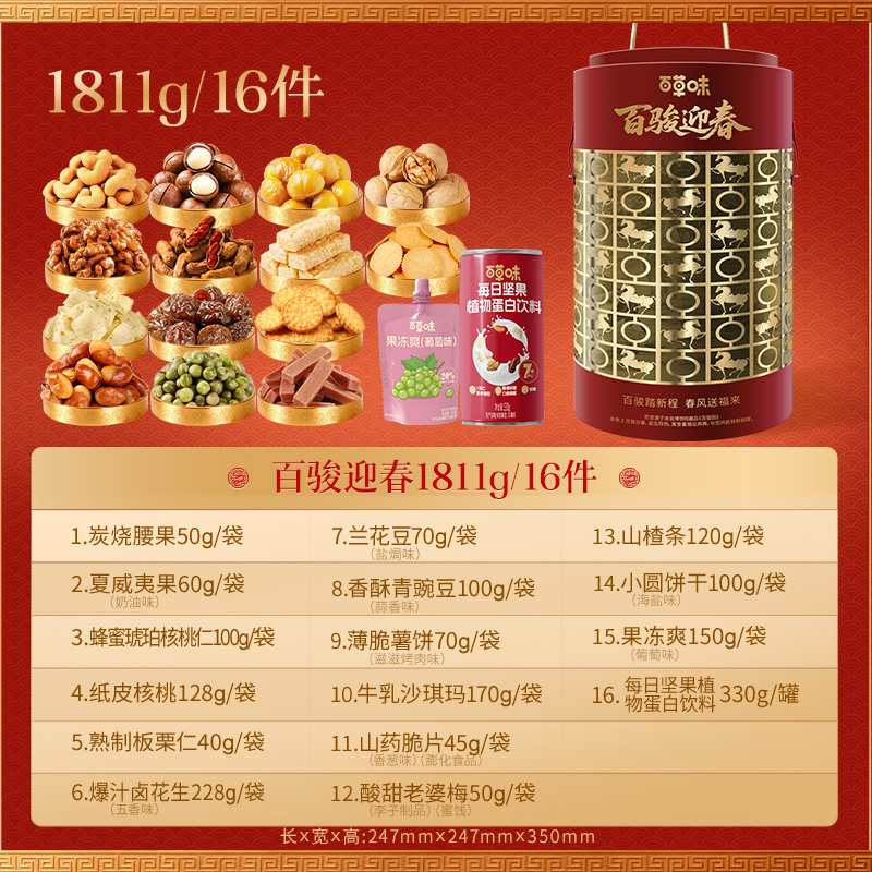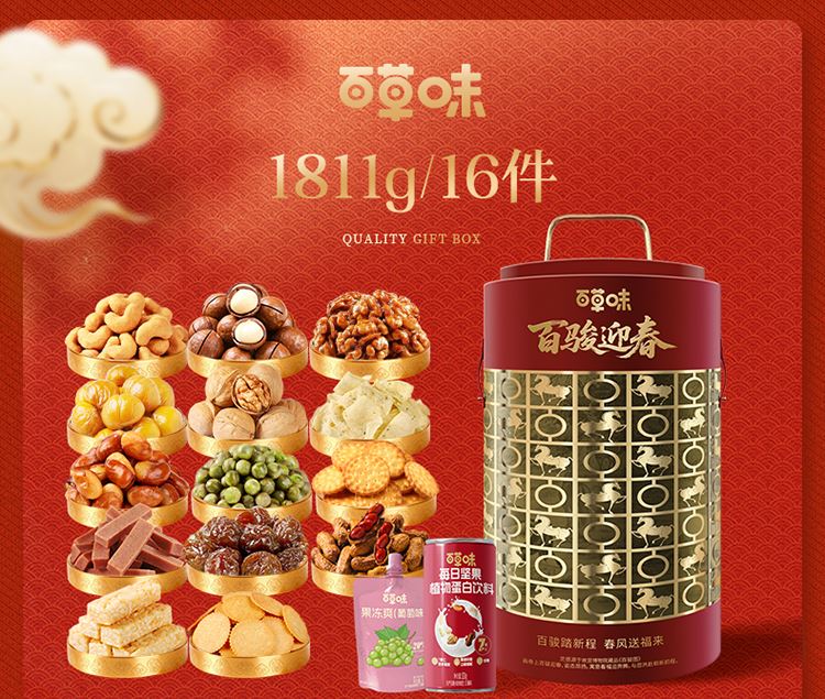 【百草味】坚果零食礼盒-1811g(百骏迎春)